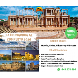 Salidas desde: Murcia, Elche, Alicante y Albacete