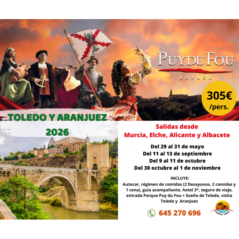 DIA COMPLETO EN EL PARQUE PUY DU FOU (incluye el magnífico espectáculo "El sueño de Toledo", la representación más grande de España)