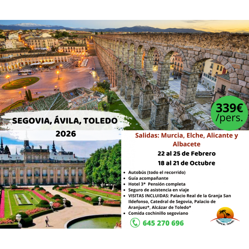 Viaje a Segovia , Ávila y Toledo desde Alicante, Elche, Murcia